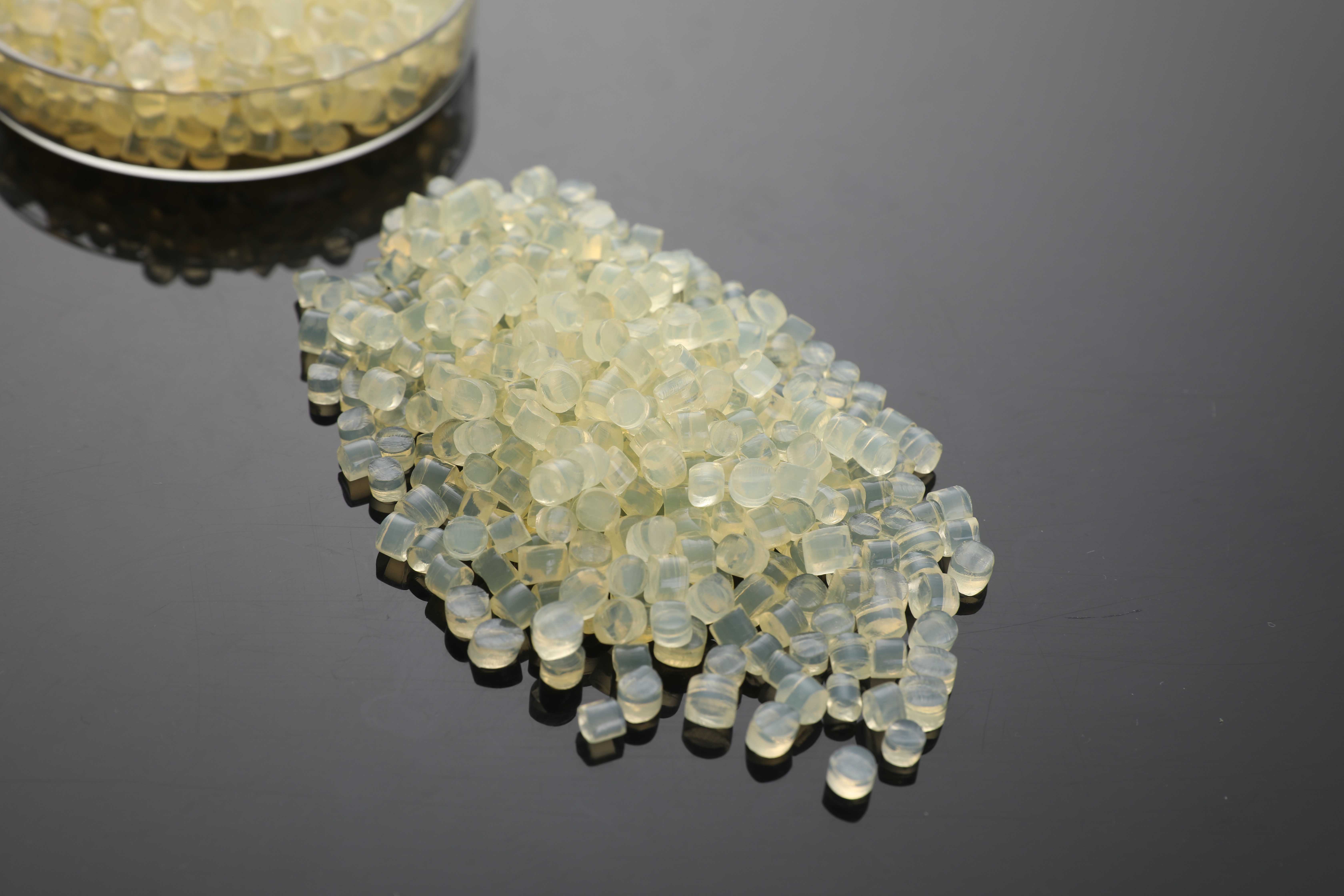 此款黃色片狀顆粒適用于油墨和表面鋪膜的紙箱復(fù)合,粘合強度好,耐溫效果佳