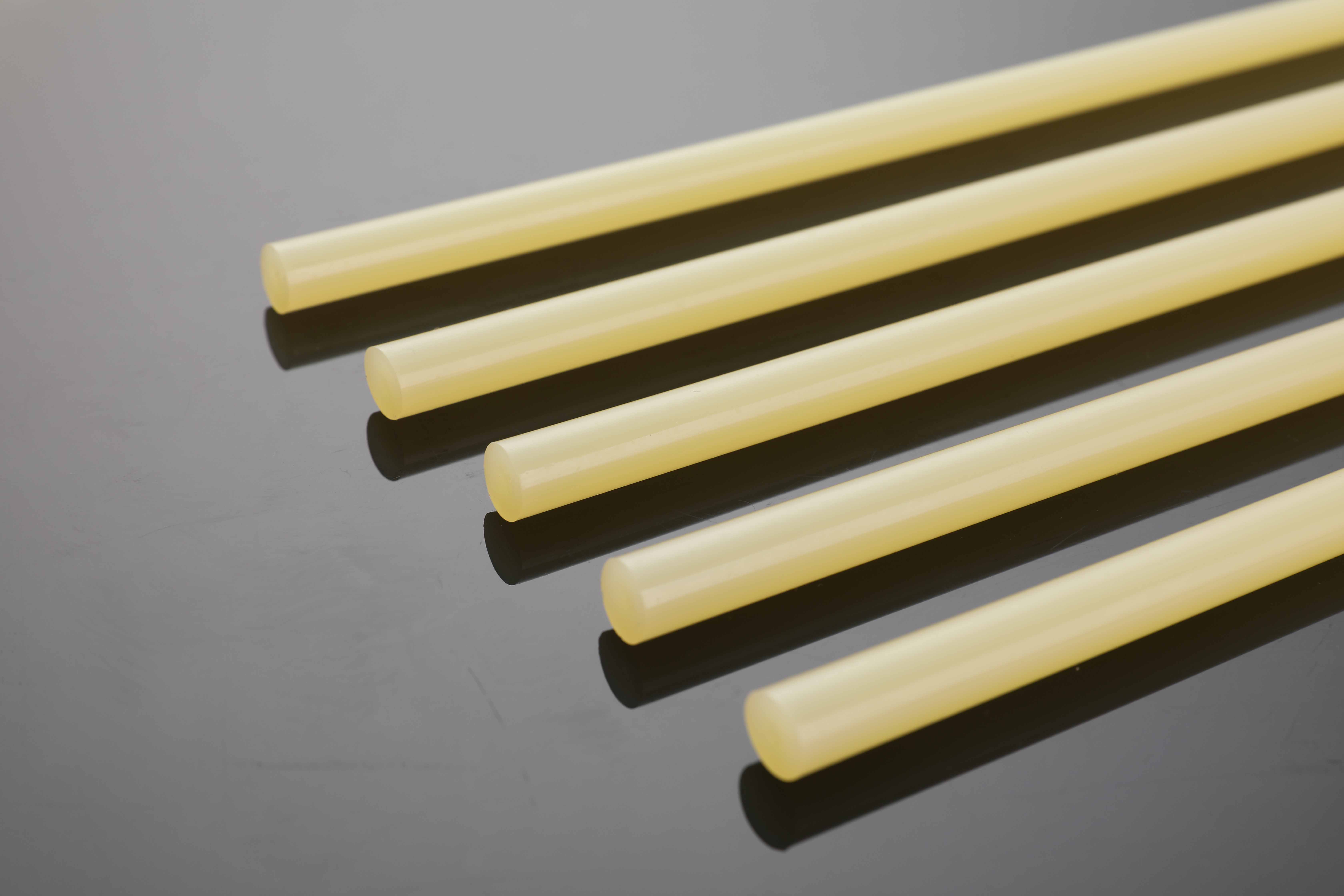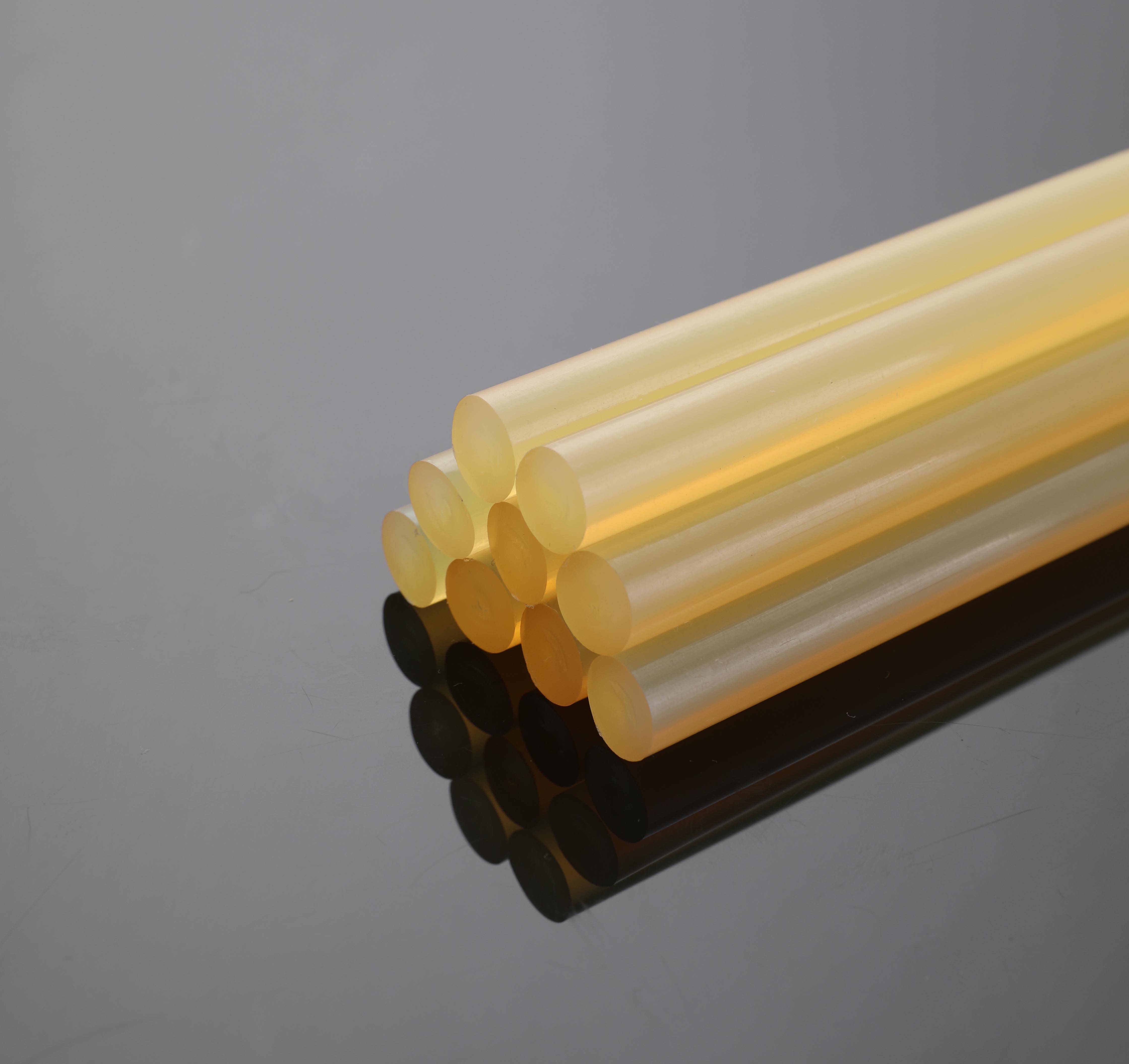 覆膜紙箱膠 | 棒狀 | 淡黃色 | EVA | 此款熱熔膠棒為黃色膠棒,相較于普通膠棒耐溫更好、粘合的材料更多、粘性更強 |